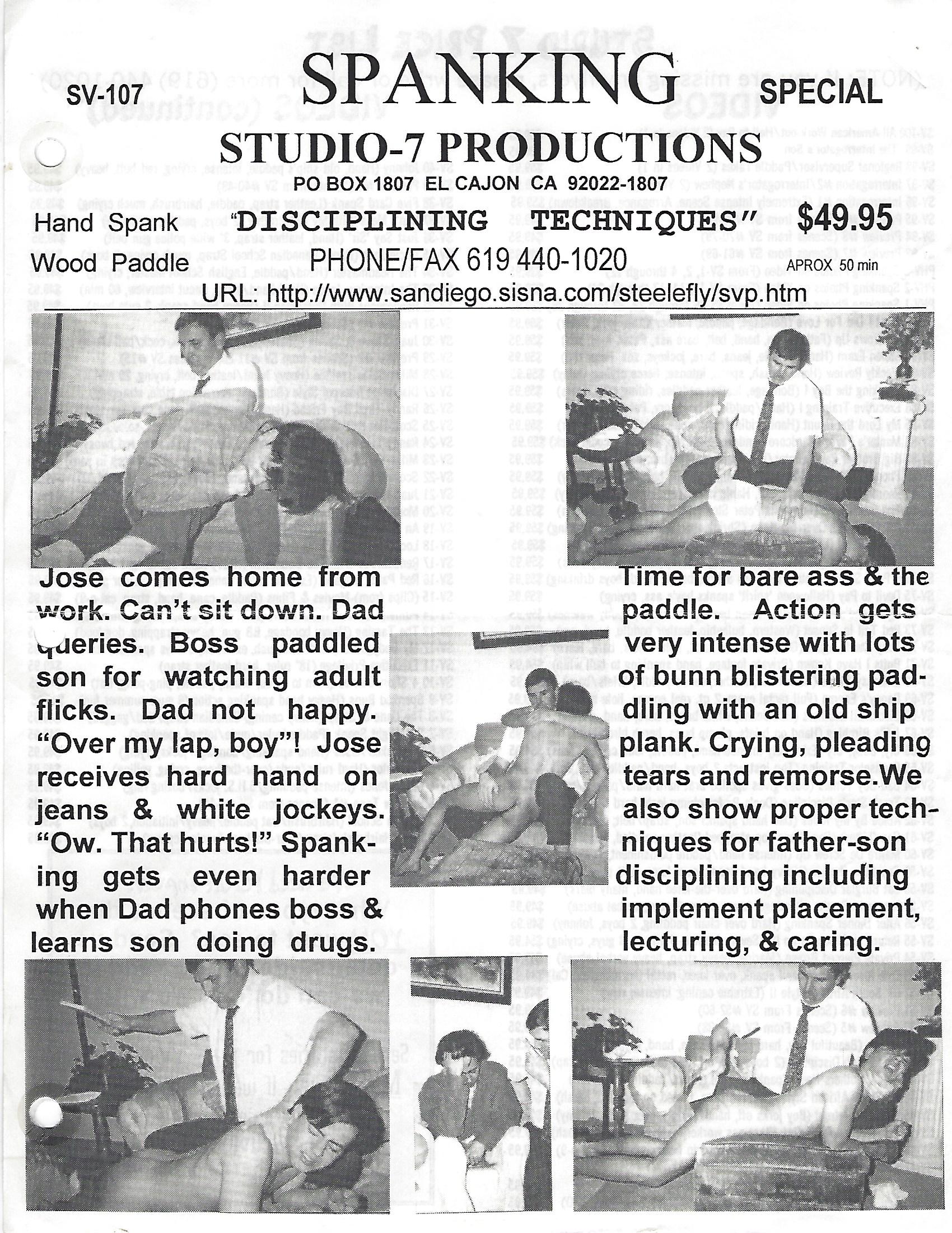 At the height of their success in the mid-1990’s, Studio-7 introduced a new actor by the name of MIKE PASTORI (real name Thomas John Mitchell) who created a sensation with his extremely assertive demeanor and severe spanking technique that often resulted with tears and sobbing. His first video for the company was “You Spanked the President’s Son” (SV-41) and he soon became the resident sadist for Studio-7.