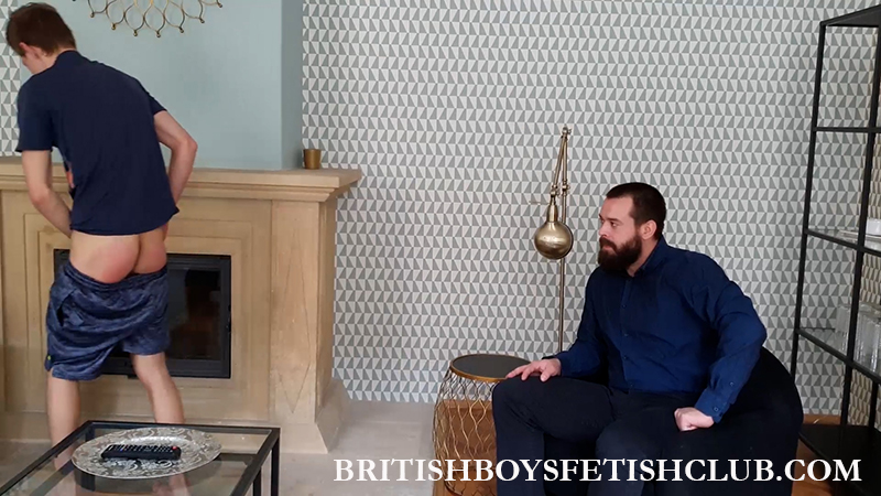 His fuss increases as his shorts come down and he gets a set on his underwear. And he is struggling around when his bare ass is paddled, he slips back so much that his junk is waving around making him feel even more humiliated.