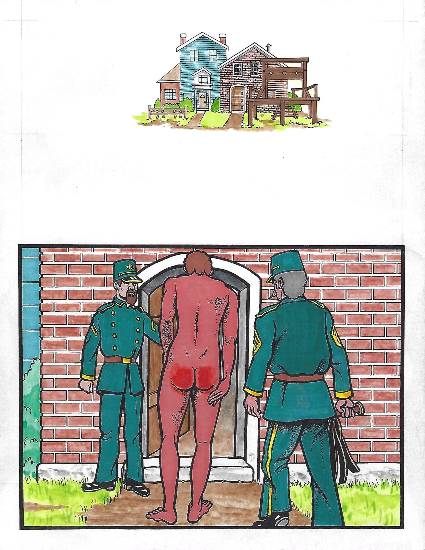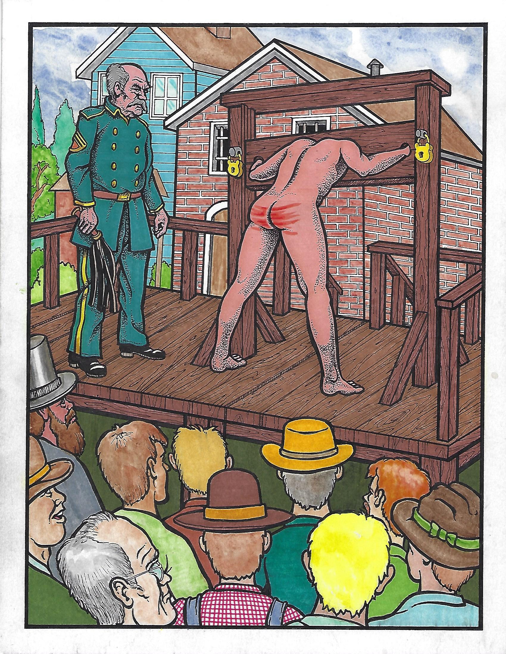 As the staff artist for Mans Hand Films for a quarter of a century, the Spanking Artist Copper, had prepared two sets of illustrations for Mans Hand Films “Red Tails” magazine before Mans Hand decided to cease publication in January of this year. Hence these illustrations have never been published before.