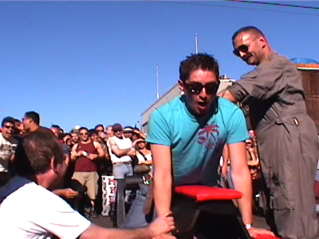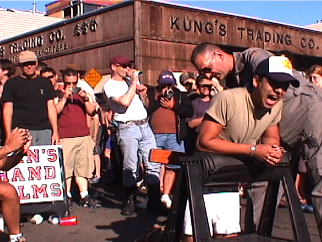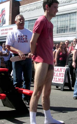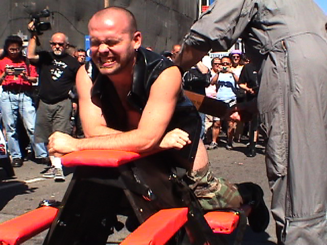 Some unlucky victims feel the sting outside the Manshand booth at Folsom Street
