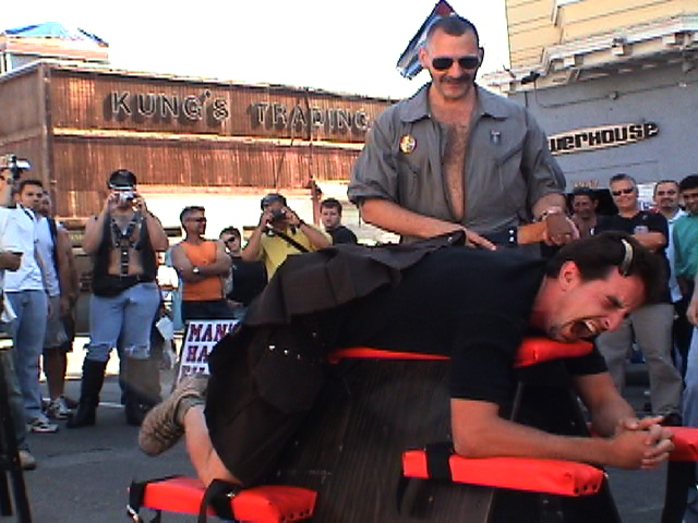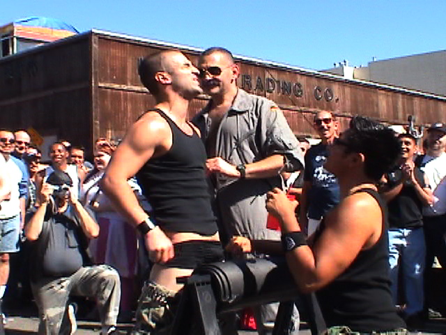This weekend over in San Francisco the famous Folsom Street Fair takes place, here are some pictures from the fair in 2004 which were recently posted to the M_Spank_M Google group by IpaddleU. (The handsome man with the gray mustache is the artist Copper)For more pictures and links to information about Folsom street visit the excellentLeather Strap blog.