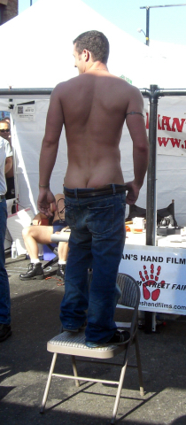 With this year’s Folsom Street Fair in San Francisco now only a month away, here are some images from previous year’s fairs, all shot at the Mans Hand Films Spanking Booth