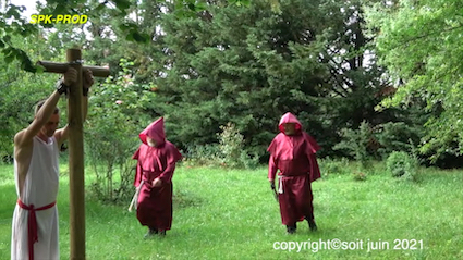 Quand on est novice dans l’abbaye dite des lunes rouges, il faut mieux bien connaître le règlement. Notamment l’interdiction de sortir sans l’accord du Maître. Notre novice va découvrir le châtiment appliqué par son ignorance. Une flagellation au poteau.