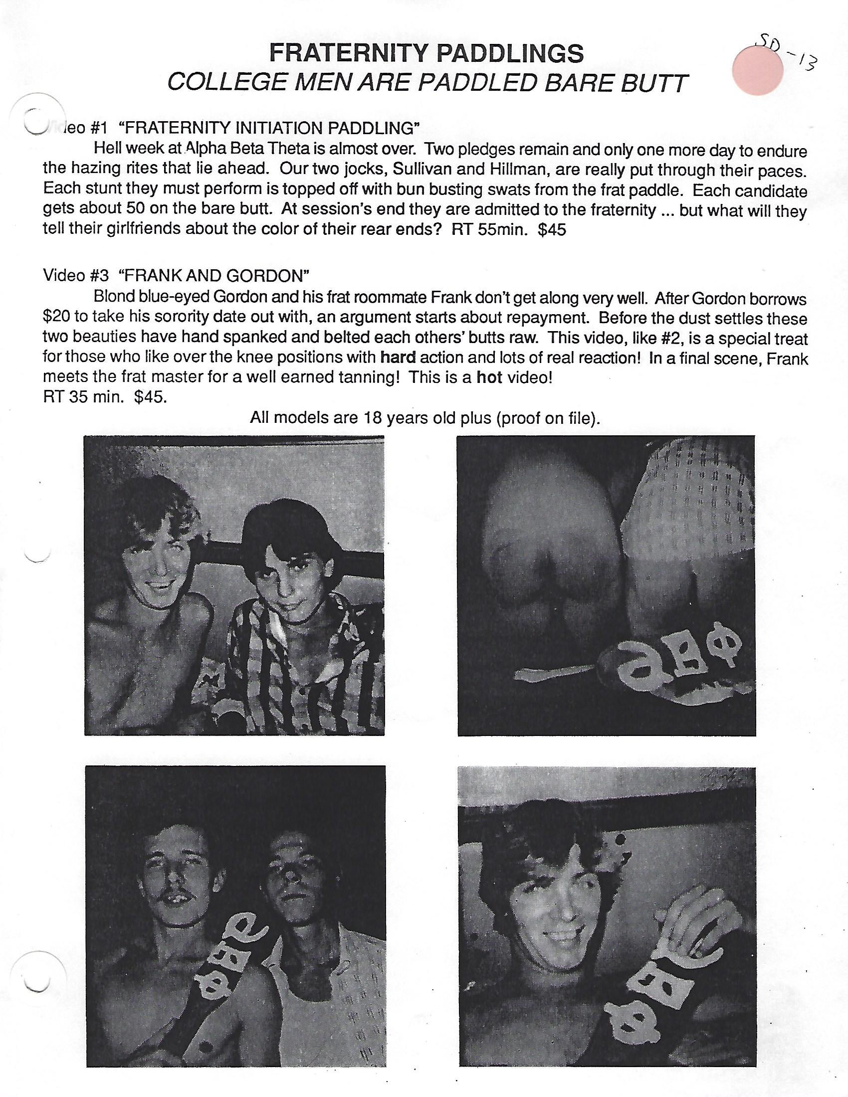 Matthews’ next attempt to connect C. P. fans was through the creation of an on-line fraternity that he named Chi-Delta-Theta. Here, guys that were into paddling could connect with other guys in their region to undergo a series of prescribed “ordeals.” Successfully accomplishing the ordeals would result in “Brotherhood” status and would then allow them to initiate others into the fraternity. While there was some initial success, most tops refused to submit to the ordeals and this plan also fizzled out.