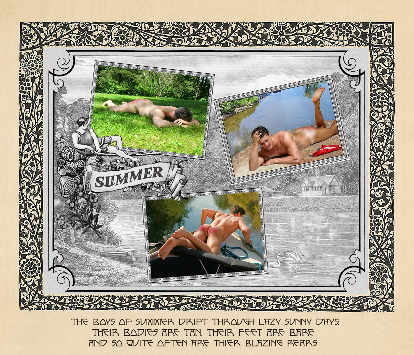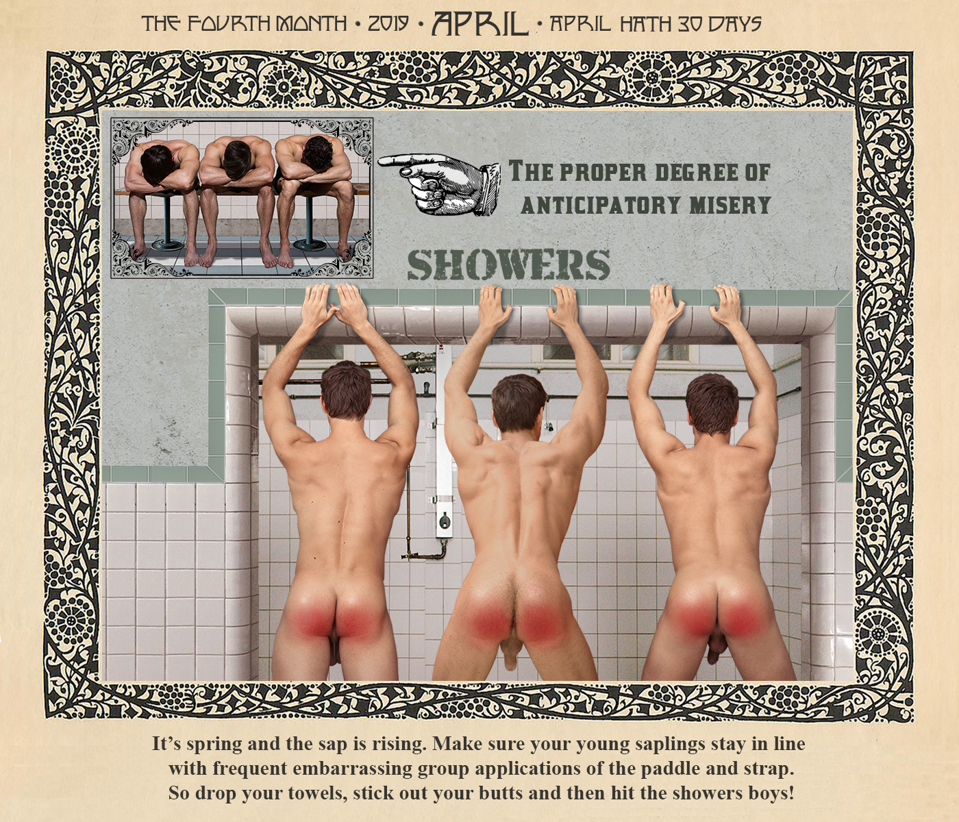 Part 2 of Mark’s wonderful new Fantasy art series, featuring handsome young men in various scenarios in which they have to drop their pants for a spanking, paddling or just general Whoppin’.