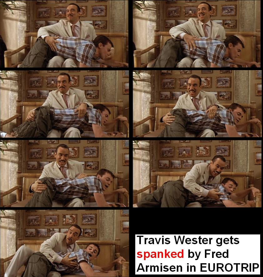 NOTE: Sadly this scene only appears very briefly at the very end of Eurotrip, behind the closing credits. So if you go out and buy or rent the movie in the hope of watching a hot spanking movie you will be disappointed.