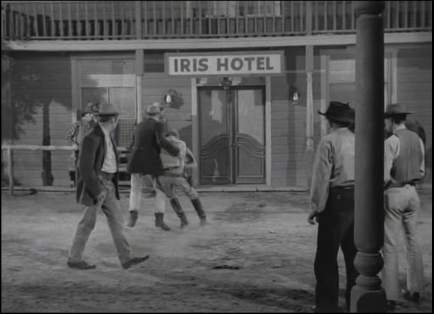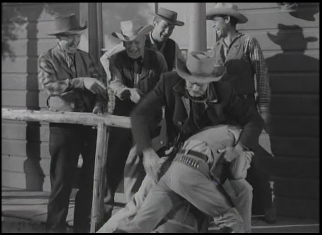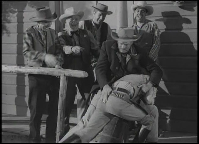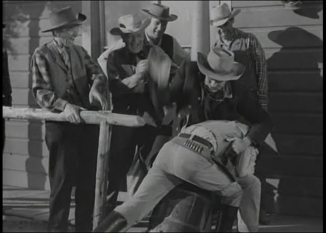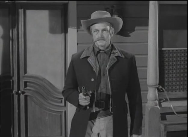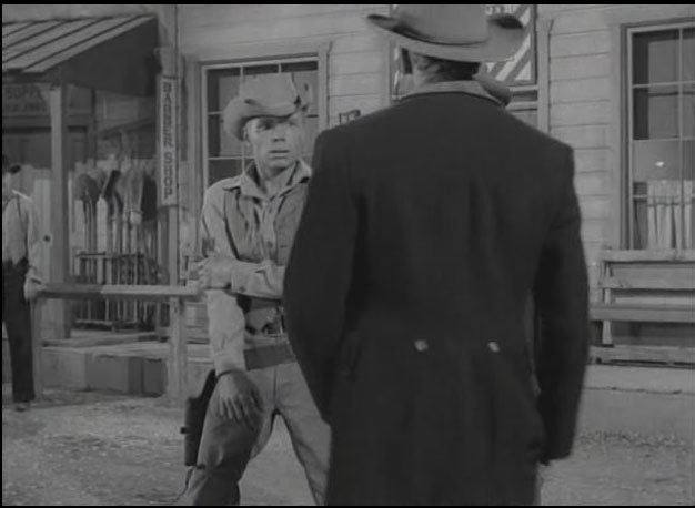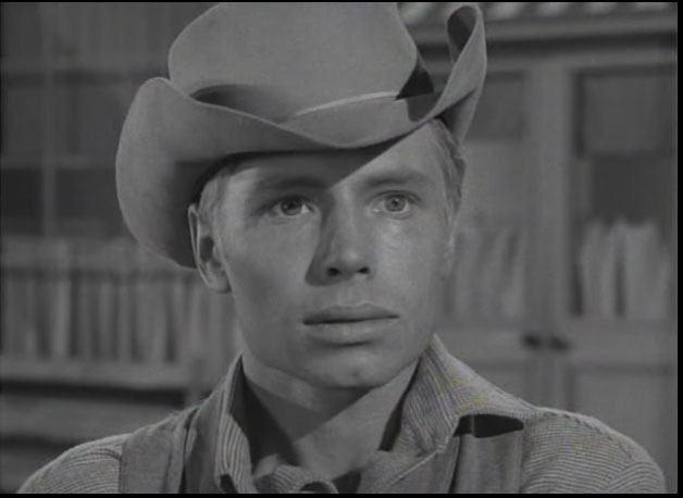 Some images and a clip from the 1950’s TV Western show Have Gun Will Travel Season 1 Part 18 “A Reasonable Man” first shown 11 January 1953. This scene stars Barry Atwater, then aged 39 as the spanker and Tom Pittman, then aged 25, as the young gunslinger who gets spanked.