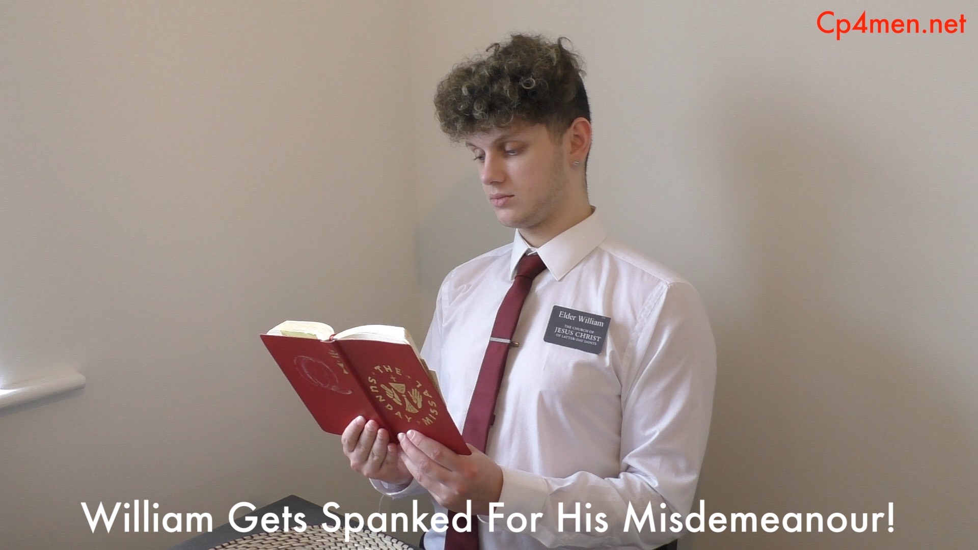 William is in big trouble and Elder John decides to discipline him. It’s his duty not to spare the rod, so William goes over the knee for a sound spanking, first on trousers then underwear then bare. He hopes that this teaches William a lesson in self-control!