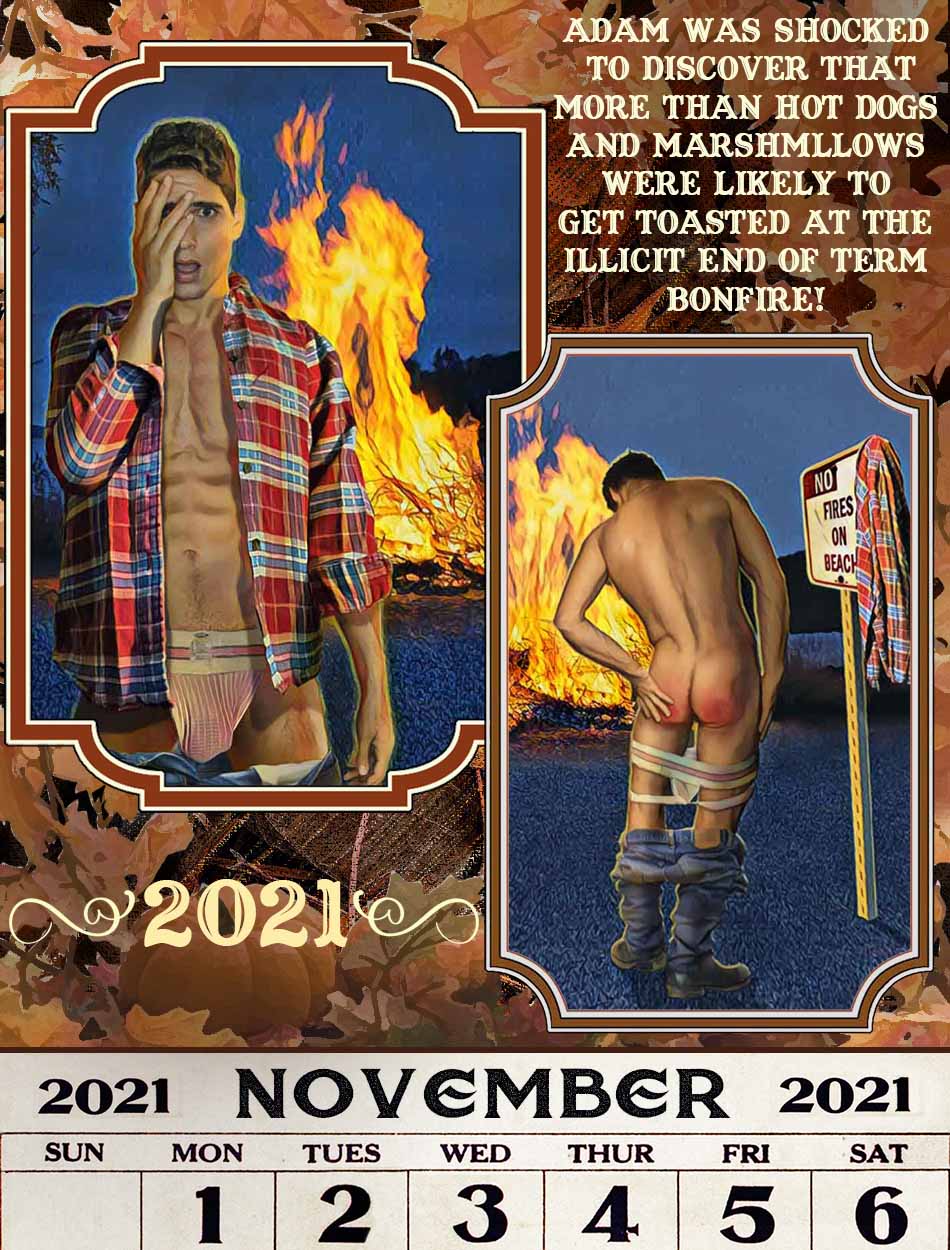 Here is the final two parts of Mark’s brilliant 2021 Spanking Calendar, created especially for JockSpank and covering the period from Autumn 2021 through to Spanking New Yea in 2022