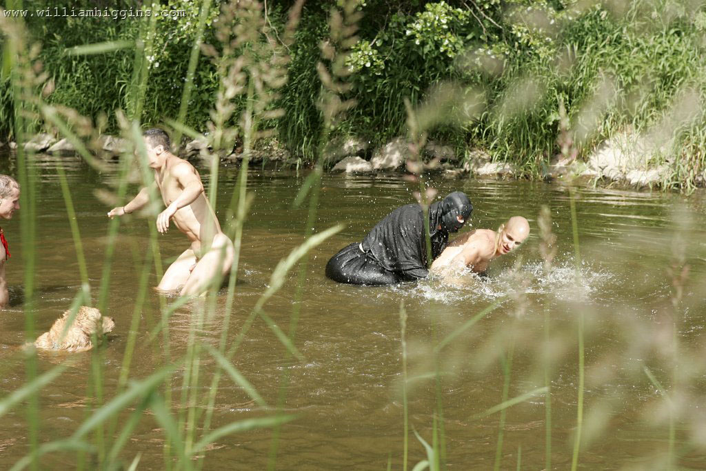 Ladislav Bohar gets his meaty butt spanked a rosy pink by the Mad Monk, who has been lurking in the woods and watching the Czech boys go skinny dipping, in this photo shoot by William Higgins.