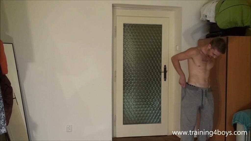 Petr is a young muscular guy who has been working as a painter and now must submit to a training punishment for the first time. The master orders him first to undress, and then he gets to receive a painful spanking by hand, while standing with his hands behind his head. Petr continues to submit to his first ever training punishment as it continues with an even more vigorous and painful hand spanking as he languishes over the master’s knee.