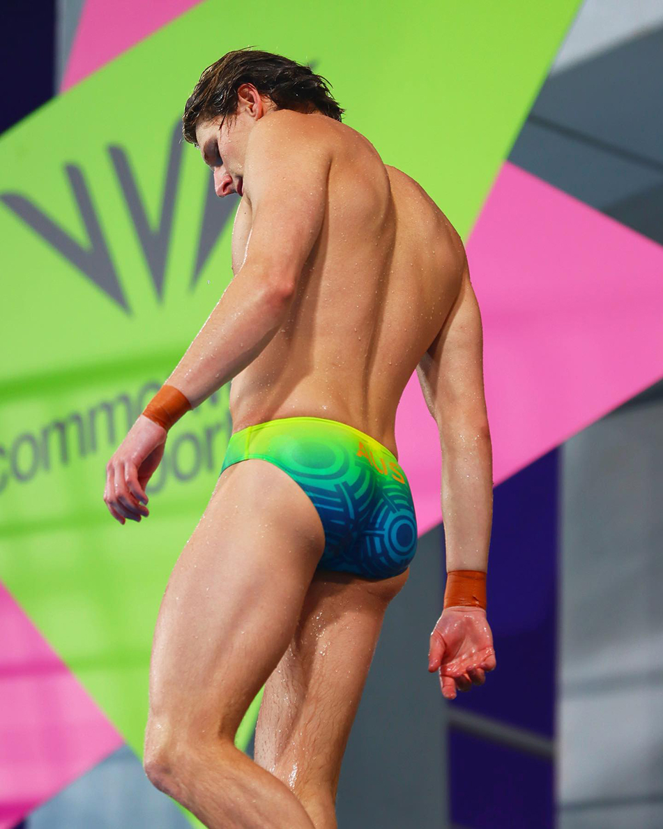 Sam Fricker in flamboyant speedos