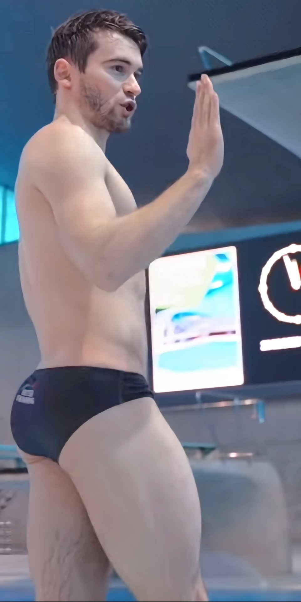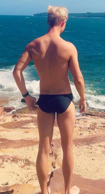 Sam Fricker in trademark skimpy speedos