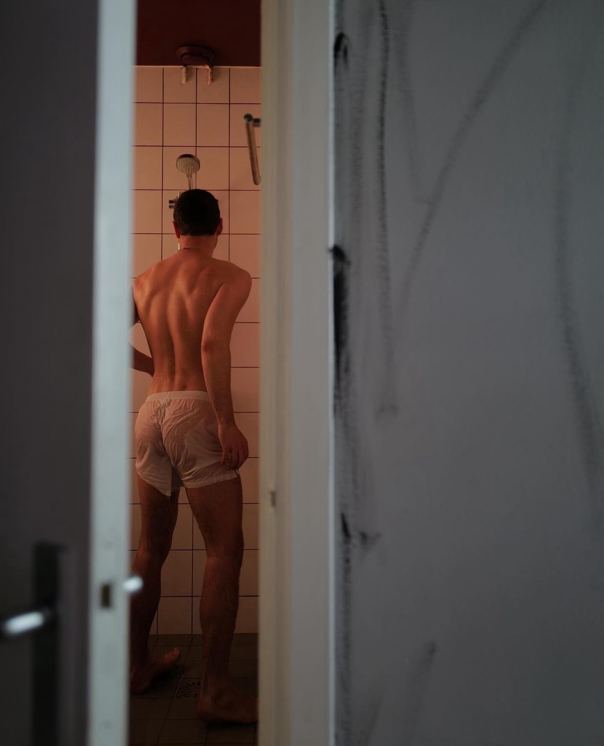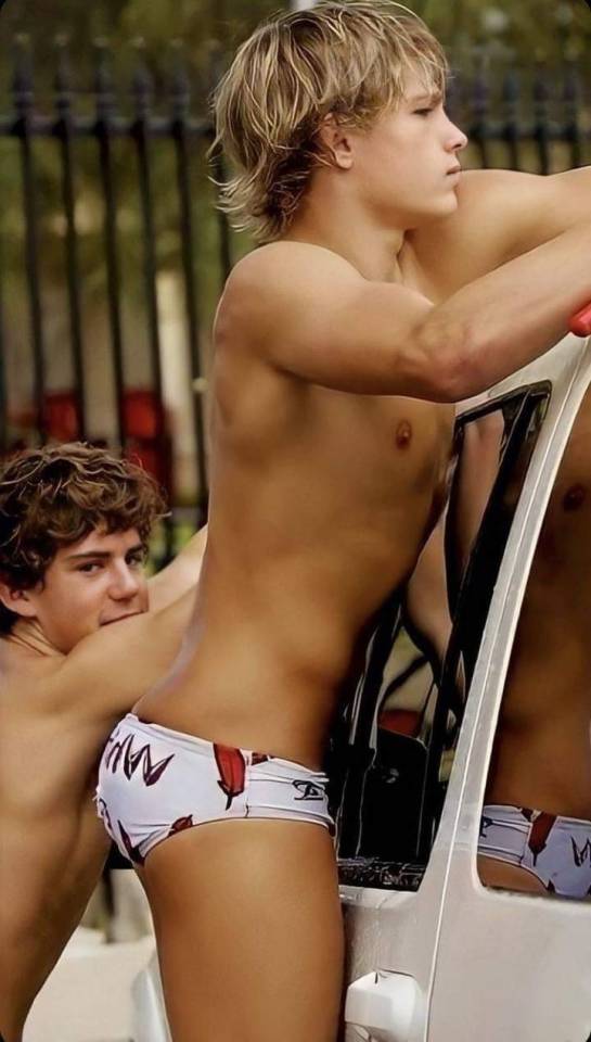 It shows some footage of Tom in his underpants (sadly rare at that time, though there have been more such photos since, some of which are guaranteed to set your spanking-hand a-tingling!). The video shows a glimpse of Tom’s rear-view and profile in some deliciously short royal-blue boxer-briefs with a bright-red waistband and leg-trims – just perfect to frame his cheeky little bottom for a spanking, to say nothing of being my all-time favourite colour for spankingwear! Watch the video and if that sight doesn’t practically set your palm a-fire, I’ll eat my shortest shorts with your choice of a garnish! (For American friends, incidentally, ‘shorts’ means short trousers as opposed to underpants.) At the time I said that it would be that particular pair of pants that Tom would be laid across my knee in! But looking at this morning’s gif above, I’d have to say I’d changed my mind on that and that those brightly mottled swimming-briefs Tom is wearing would be the ones in which the lad would feel the stinging, smarting force of my spanking slipper over my knee! Also, swimming-trunks, as Tom prefers to call them himself, have the added feature of being nylon or polyester, which always gives an extra kinky element to a spanking! Oh, for the return of those brightly coloured nylon briefs that were the fashionable underpants for boys in the 70s – the Golden Age of Spanking, when shorts were properly short, underpants were brief, and hard smacked bottoms with a variety of instruments of punishment were still the accepted and approved way to discipline naughty boys!