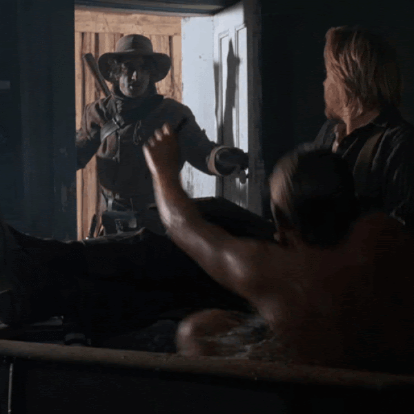 Emelio Estavez has a bath-time surprise in Young Guns