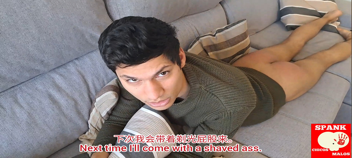 Con su culo suave y sin vello el castigo de Álex continúa en otra posición. Posición carretilla, perfecta para tenerlo bien controlado, disfrutar de su agujero suave mientras se le pone el culo rojo y jugar con sus bolas más íntimas.