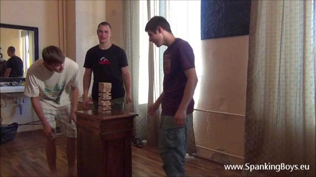 he complete collection of the 3 individual videos. The boys are playing Jenga and as usual for each brick successfully extracted and placed on the topmost level an added ten-spank penalty is assessed for whichever boy ends up being the loser. The longer the game lasts the harsher the punishment can expect to be for the loser. So, the boys each have a keen interest in making sure the loser doesn’t