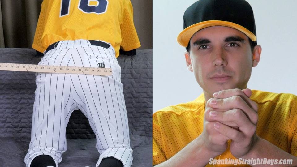 Carter is a 23-year-old straight boy with a perfect face and lean, defined body. He grew up playing baseball, and today Tom puts him back in a baseball uniform for a hard spanking. Spanking Straight Boys have titled this video “Balancing Out” because Tom goes out of his way to balance the redness of Carter’s cheeks.