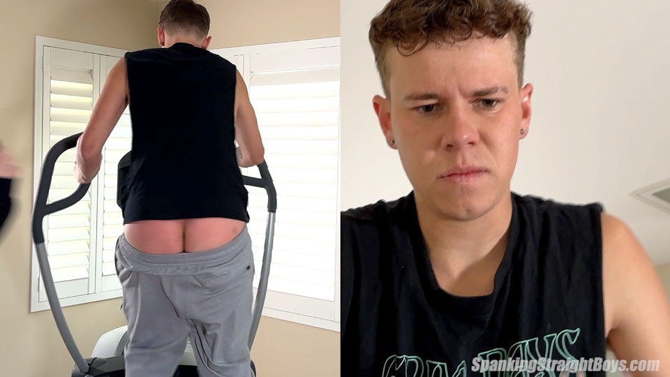 Terry is a 22-year-old straight boy with a great bubble butt. Today, Tom spanks him while he’s working out hard on the elliptical.
