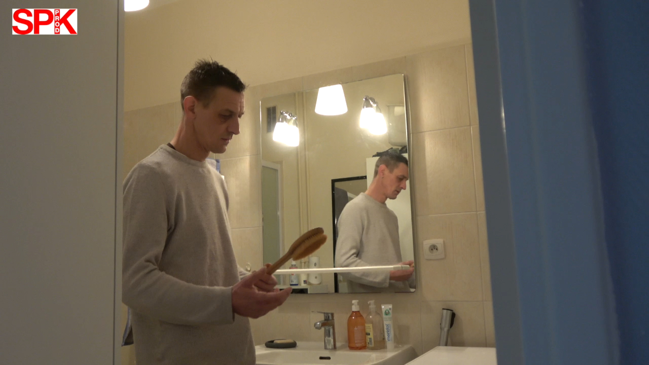 Dernier moment du weekend punitif de notre ami Justin. Une dernière « petite fessée ».  Mais voilà , un sms de sa femme va modifier la dernière punition par une fessée à la brosse…