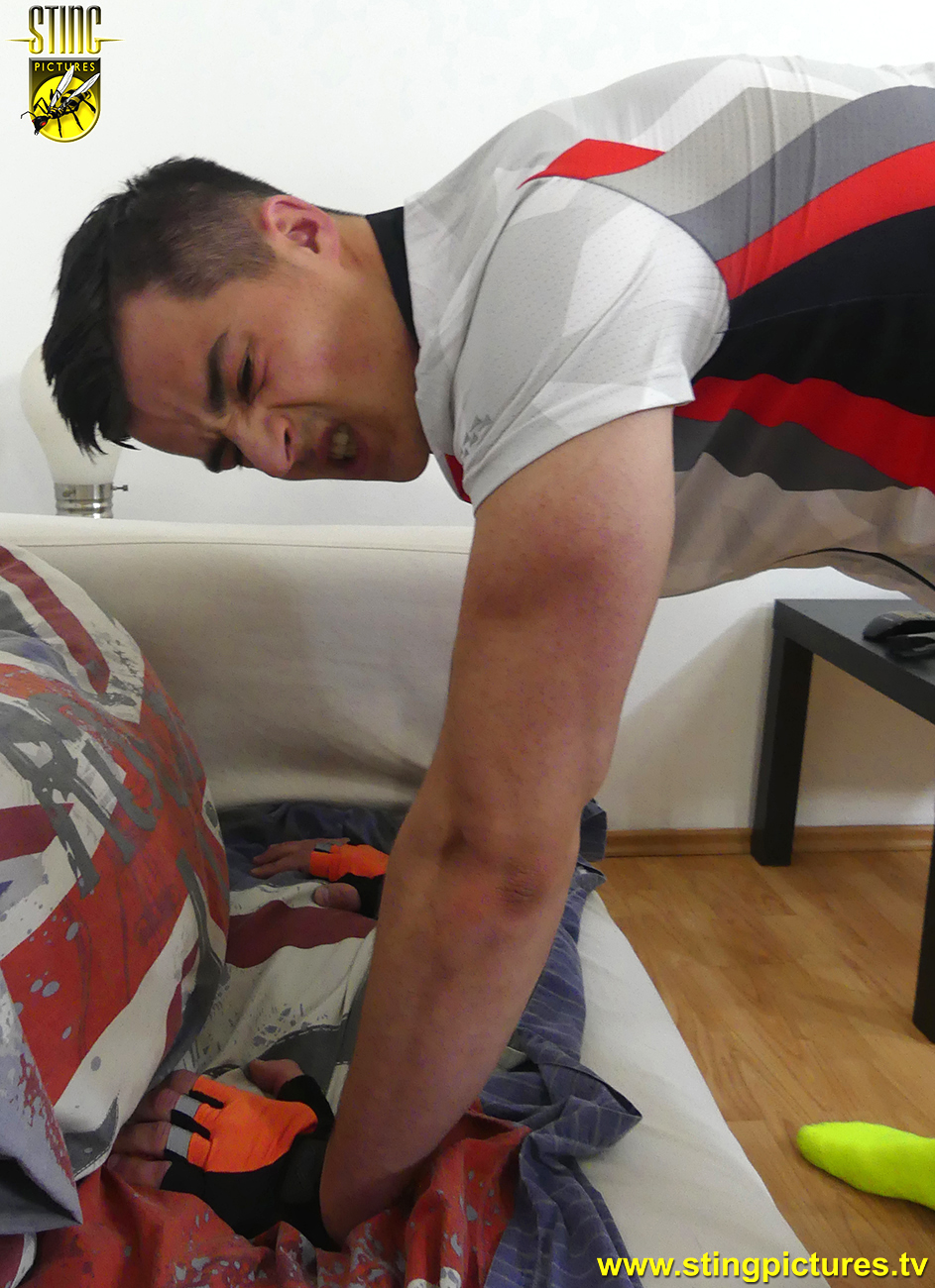 After the spanking a taste of the strap on his bare bottom for allowing the bike to be stolen, a second time!