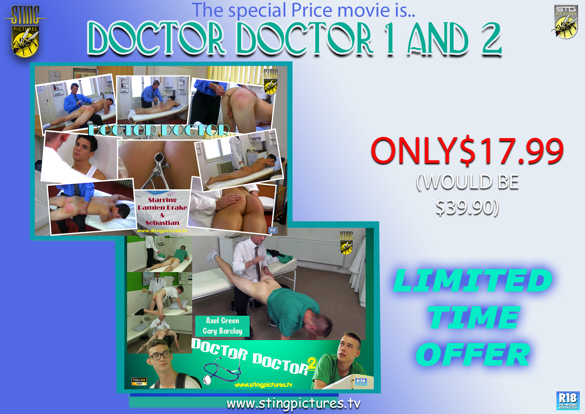 Sting: Video Preview for the Sting Special Price Spanking Compilation “Doctor Doctor and Doctor Doctor 2” Posted on September 23, 2021 12:55 am by Bruce Comment Click Here to visit the Feel the Sting blog for the video preview of the latest Special price Classic Compilation from Sting Pictures Title 2257 Share this: Share on X (Opens in new window) X Share on Facebook (Opens in new window) Facebook 📂This entry was posted in Male Spanking Sting Sting Classic Special Sting Compilations 📎and tagged Male Spanking Sting Sting Classic Special