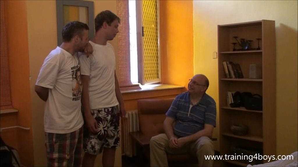 Tomas introduces Kuba his roommate to the Master for a training spanking video. Kuba is a straight guy and this is his first spanking video (as well as it being his first spanking ever) and first time to be touched by another man in this way, making it even more uncomfortable for him, but he does submit anyway. He receives a painful training spanking by hand while having to stay over the master’s knee. Soon the two guys must take turns spanking each other. The whole ordeal creates for the boys a mixture of embarrassment, amazement, and pain .